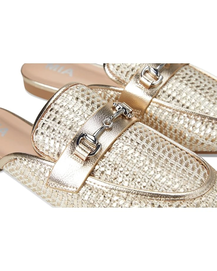 - Level up your work wear with MIAâ„¢ DESZ. It’s all in the details with its elegant silver buckle and woven raffia material that completes any sophisticated look. With comfort at the forefront, you’ll be slipping into these every day.