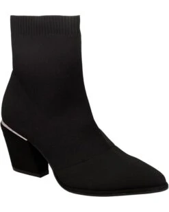 - Fall into style with the DRAXTON knit booties. Designed from a stretch-knit material, this slip on sock bootie features an almond toe and is finished on a sturdy, suede wrapped 3-inch heel. Easy to wear and easier to style.