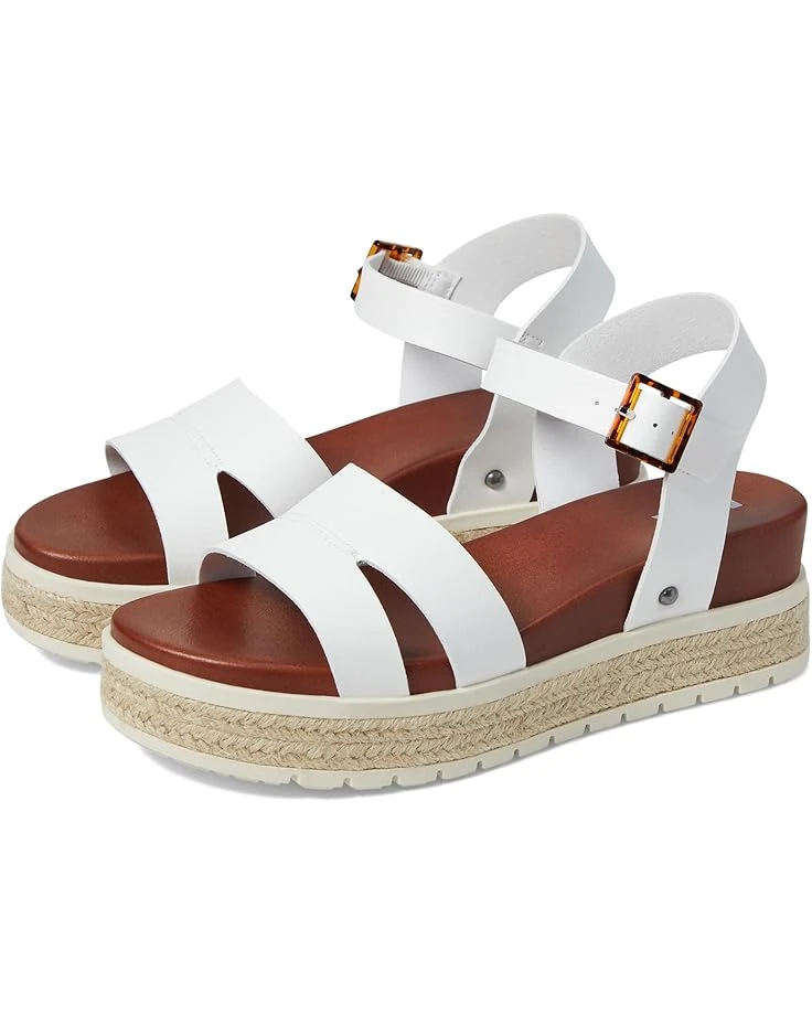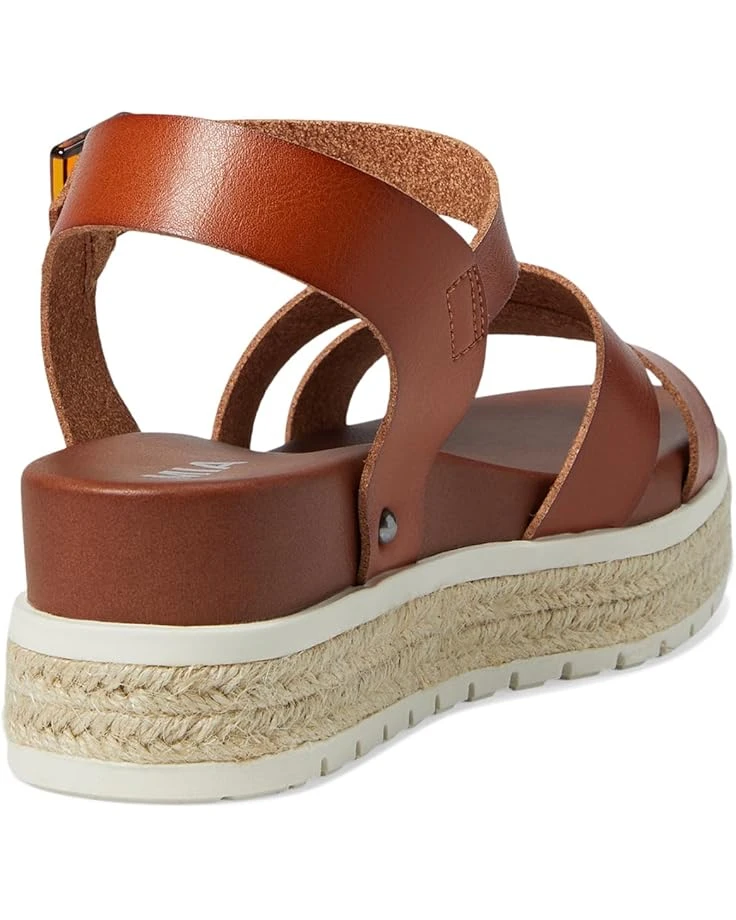 - Make your daily hustles perfectly comfortable wearing the MIA™ Evana Sandals. The espadrille platform heel footwear features faux leather upper, lining and footbed construction with open round toe silhouette.