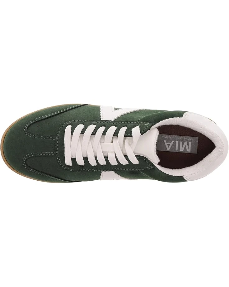 - Style meets comfort in the MIA™ Klair sneakers. Featuring faux suede and leather upper with scalloped V detailing, these sneakers are perfect to pair with any outfit. They are finished with an anatomical contoured footbed and rubber outsole. Lightweight and stylish, these lace ups work for any occasion. Featuring round toe, lace detailing, and brand detailing on the footbed.