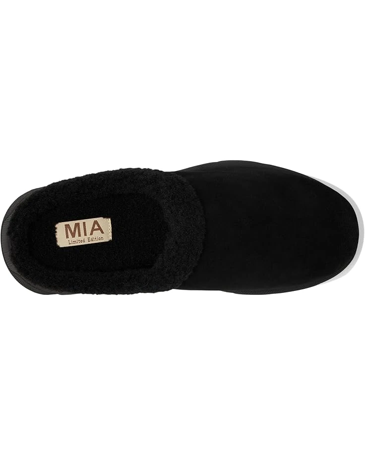 - Where fashion and comfort collide, the MIA™ MLE-Aric sandals are slip-on sandals with a 1.5-inch rubber outsole made to wear out and about. Crafted with a suede upper and a faux fur lining, these slippers are cozy and functional. The anatomical comfort footbed of these sandals keeps your feet cozy and comfortable.