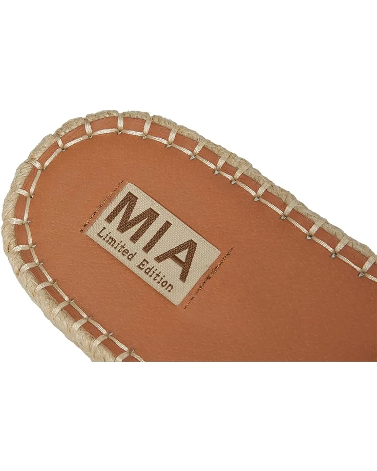 - Walk comfortably and stylishly in the MIAâ„¢ MLE-Dahya Flat Sandals, crafted in an easy slip-on style. The open round-toe flats are designed with a suede upper with stud detailing, faux leather lining, and a faux leather insole.