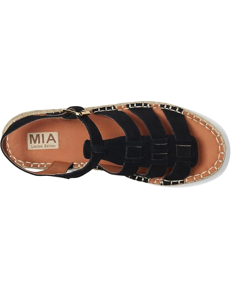 - With its strappy silhouette, the MIAâ„¢ MLE-Danette Flat Sandals add a hint of style to your look. The open round-toe sandals are designed with a suede upper, faux leather lining, and a faux leather insole. The ankle strap & buckle closure is designed for a secure fit.