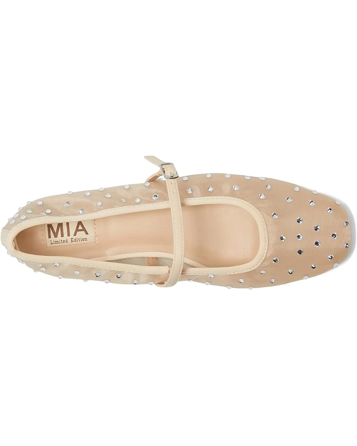 - Featuring an allover rhinestone detailing, the MIAâ„¢ MLE-Kerra sandals bring a touch of sophistication to any outfit. The buckle closure ensures a secure and adjustable fit, while the square toe design adds a modern flair. These are crafted with a mesh upper faux leather lining, and an anatomical faux leather insole.