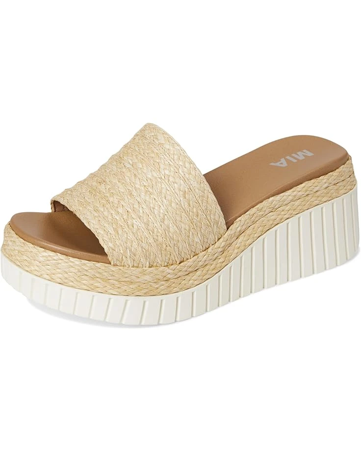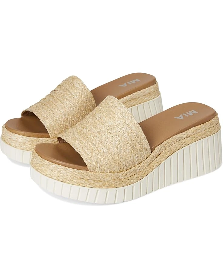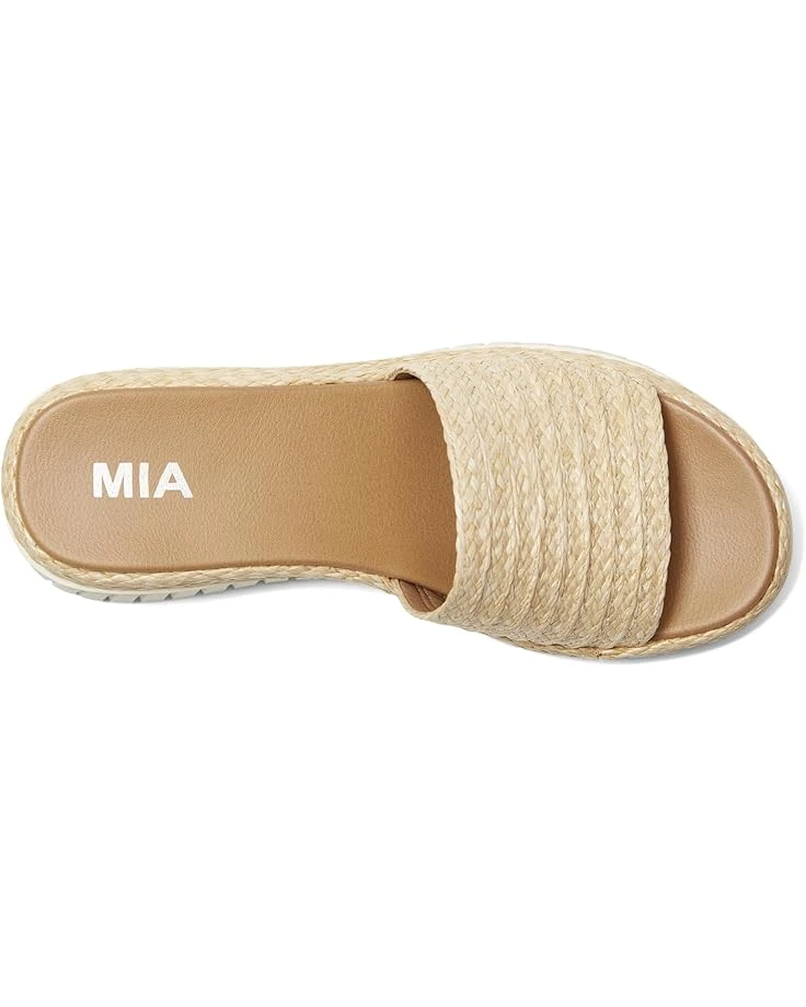 - The MIAâ„¢ Yuki is a stylish and versatile sandal featuring a sleek design with a comfortable footbed, making it perfect for all-day wear. The slip-on sandal is crafted with faux leather upper, ensuring durability and a modern aesthetic.
