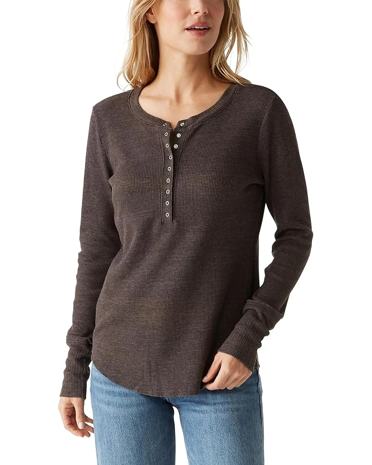 - The Michael Starsâ„¢ Regan Henley Tee is a cozy long-sleeve top made from soft thermal fabric with a waffled texture. It features a round neckline with a snap placket, extended cuffs, and a curved hem. Great for layering or wearing on its own!
